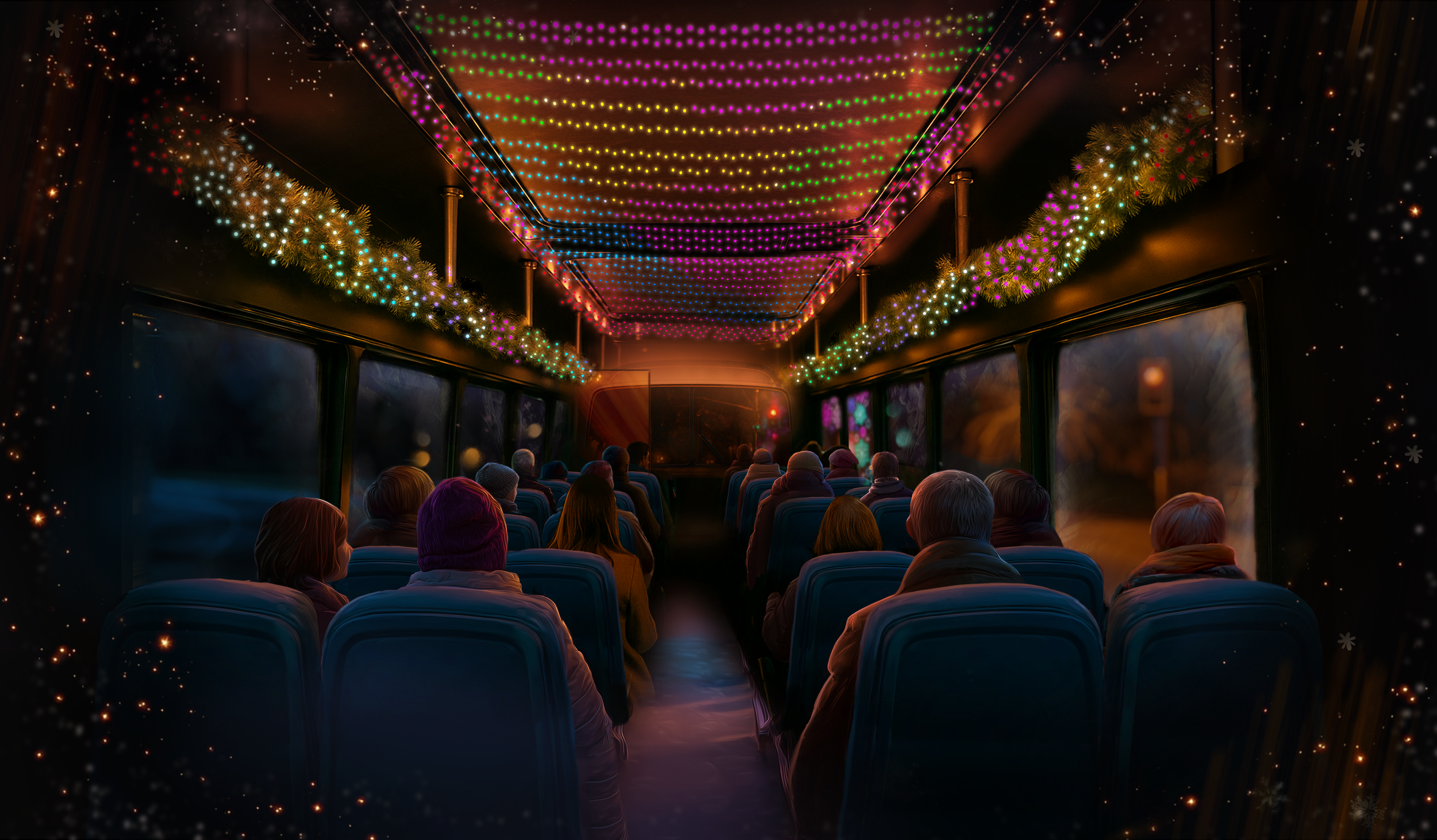 Not parking on site? Hop on our complementary shuttle - this year with a magical light show.